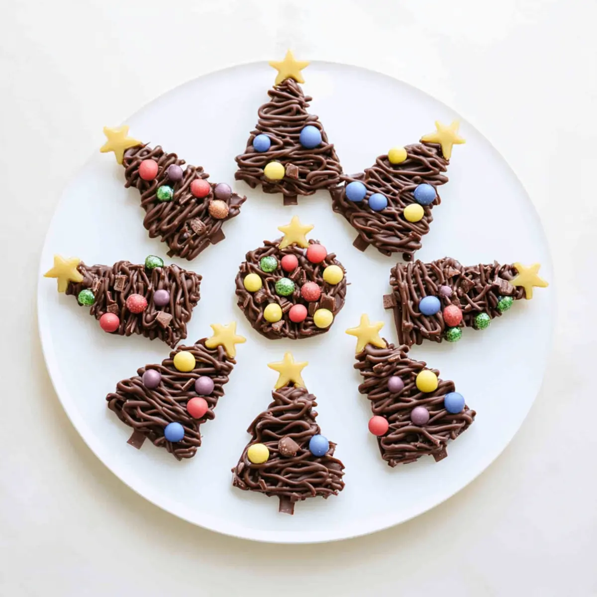 Bolachas Natalinas: Crocantes e recheadas com especiarias, elas trazem um toque tradicional que combina bem com a fantasia das árvores de chocolate.