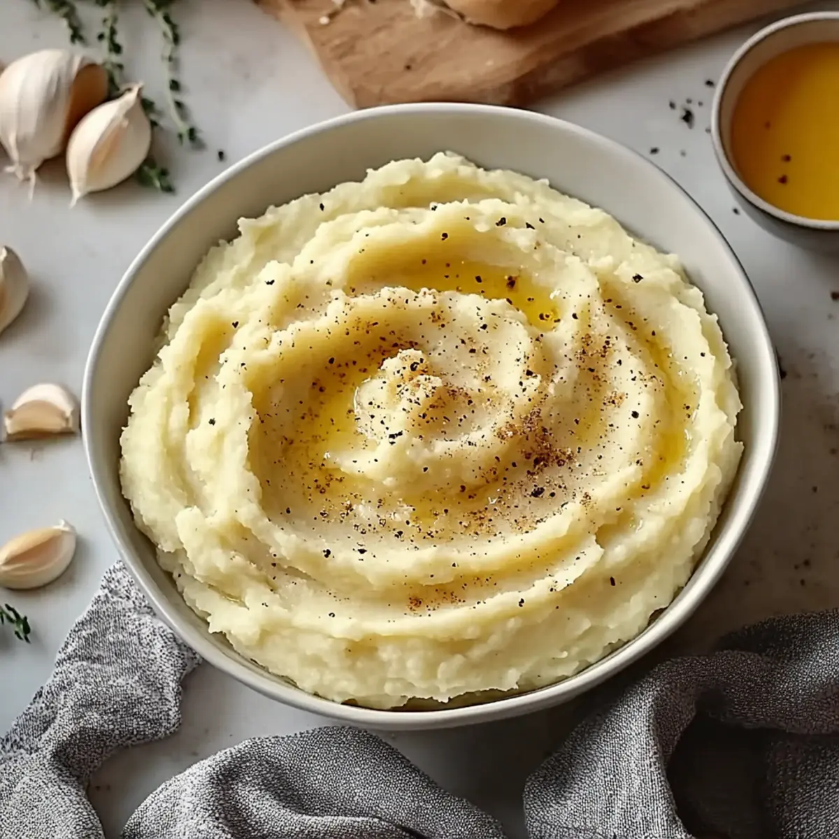 Variações e Substituições Batatas Amassadas com Manteiga Dourada e Alho
