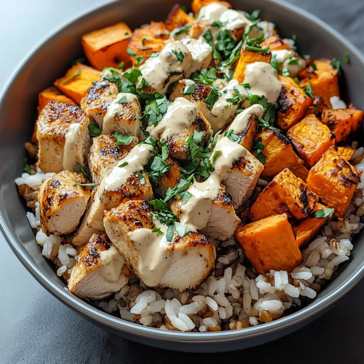 Experimente essa receita do Bowl de Arroz com Frango e Batata Doce e transforme suas refeições em momentos reconfortantes e cheios de sabor!