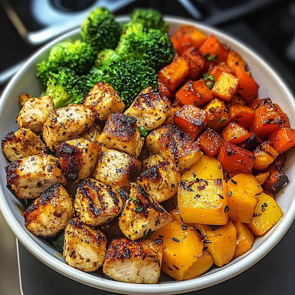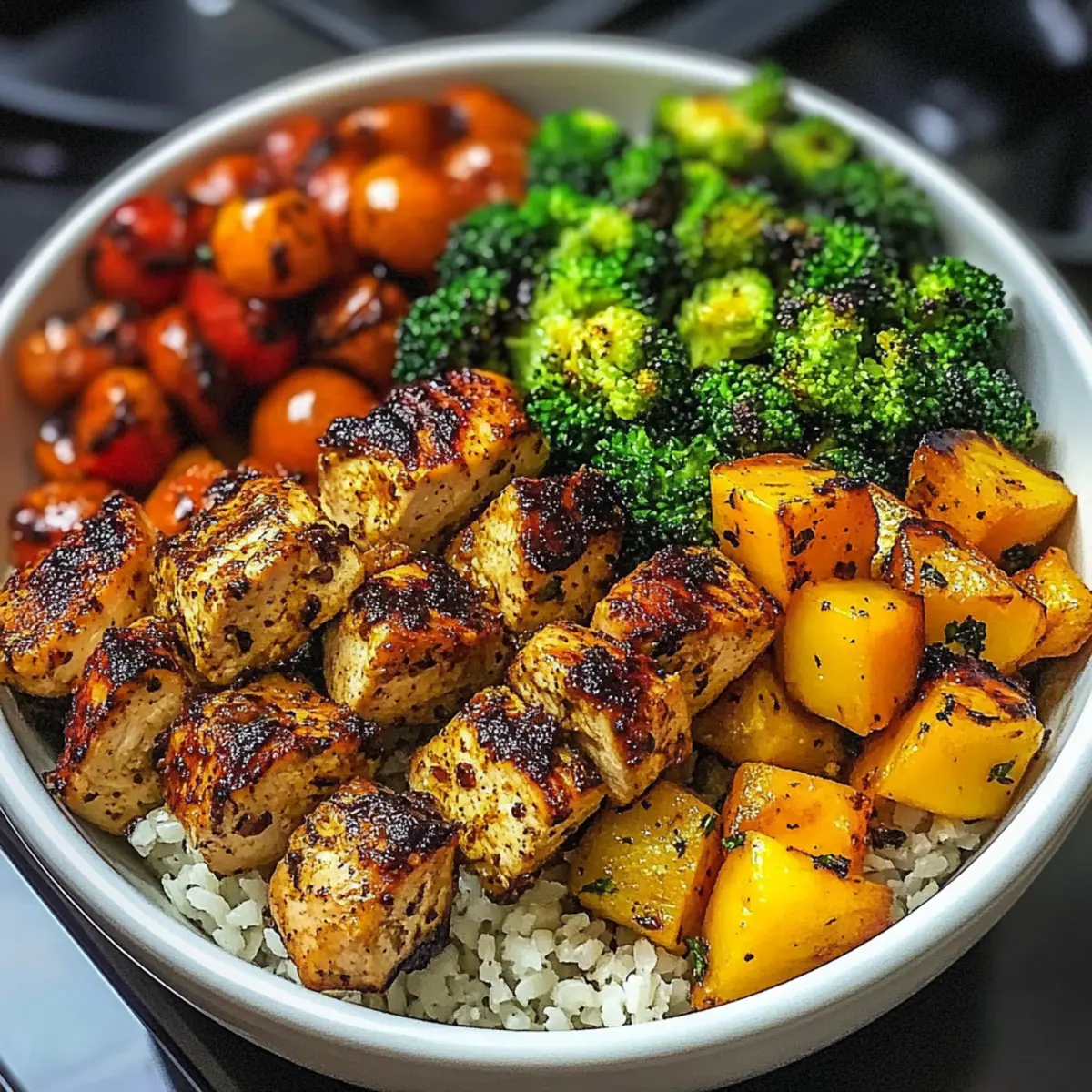 Delícia Saudável: Tigelas de Frango Picante e Legumes Assados