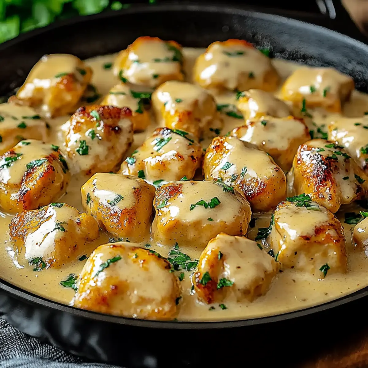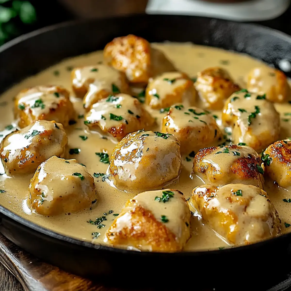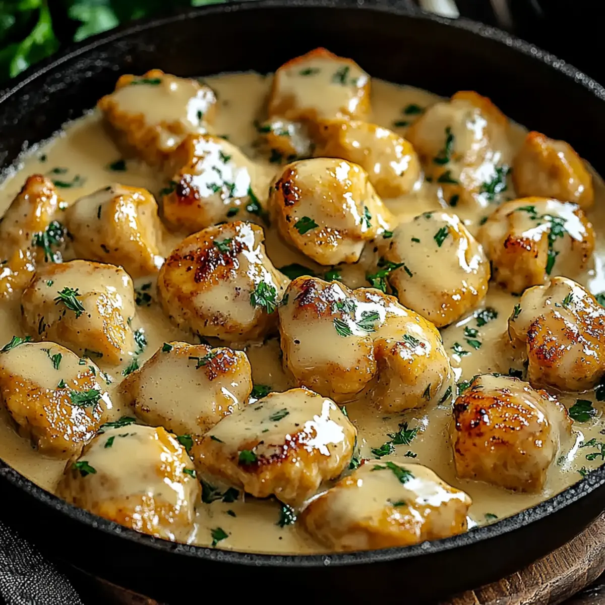 - Retorne o frango: Coloque o frango de volta na frigideira e deixe ferver em fogo baixo por 5-7 minutos.