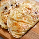 Cozinhar os pãezinhos: Aqueça uma frigideira antiaderente levemente untada com óleo. Despeje uma concha da massa e espalhe, formando um disco fino e uniforme. Cozinhe por 1-2 minutos em fogo médio e depois vire o pãezinho.