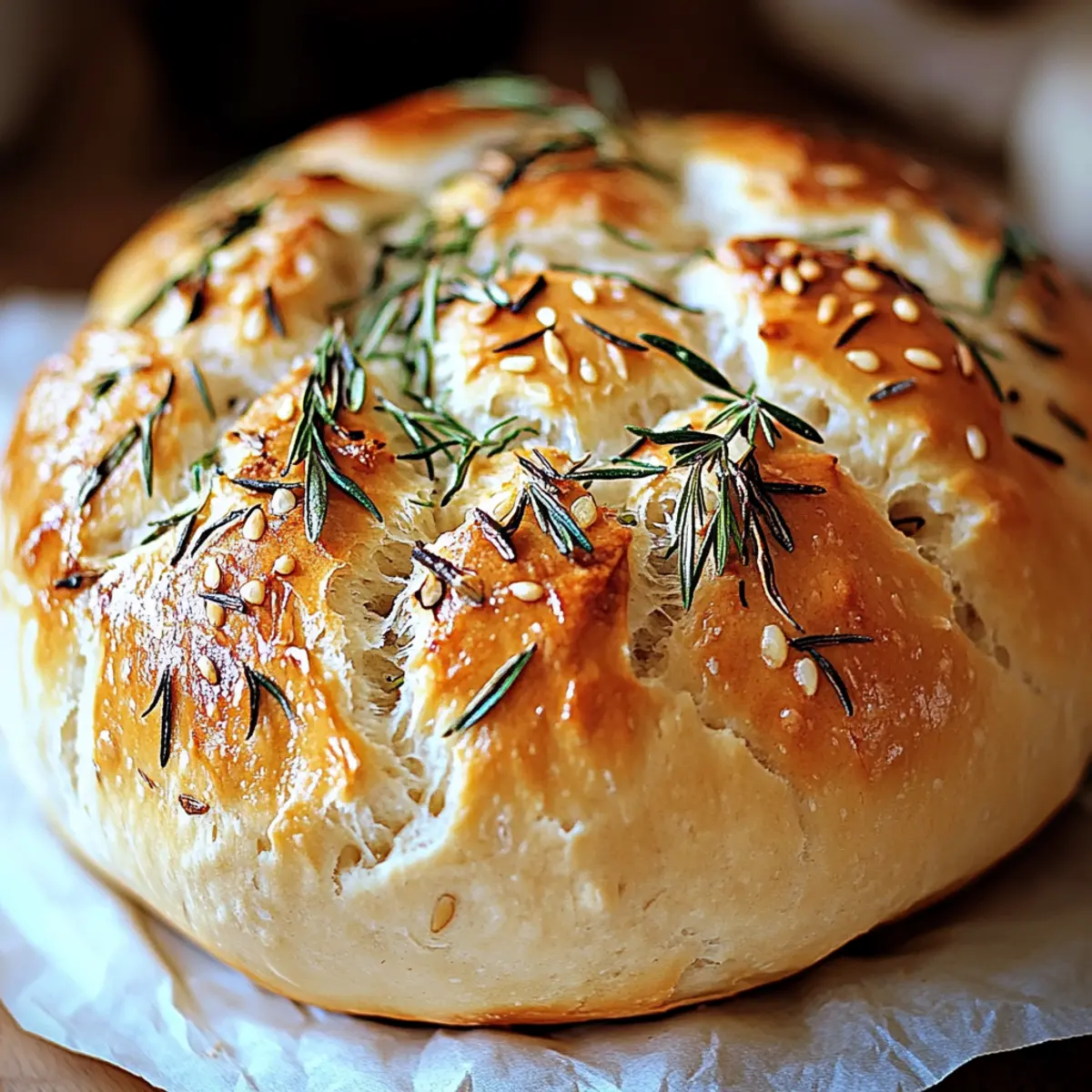 No-Knead Roasted Garlic Rosemary Bread – Bakery Style at Home 🍞🧄🌿