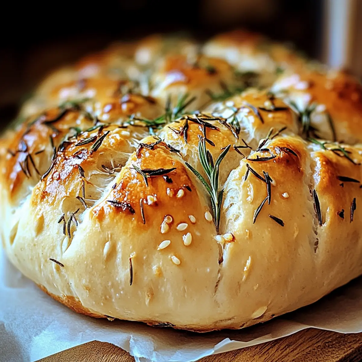 Dica Importante: Este pão não só traz o sabor reconfortante do alho assado e do alecrim fresco, como também é uma deliciosa adição à sua mesa, perfeito para compartilhar com amigos e família.