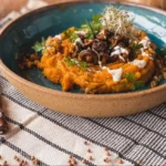 O purê de batata-doce com cogumelos salteados e nozes é um prato delicioso e saudável. Ele combina o sabor adocicado da batata-doce com a textura crocante das nozes e o sabor terroso dos cogumelos, criando uma mistura perfeita. É uma ótima opção para acompanhamentos em refeições ou até mesmo como prato principal leve.